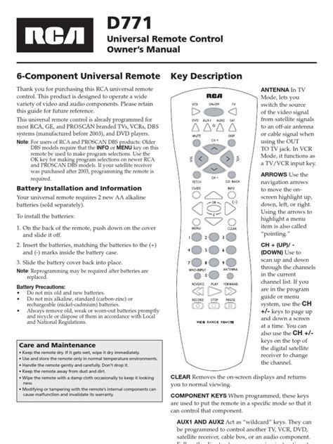 Read rca universal remote d771 manual Library Binding